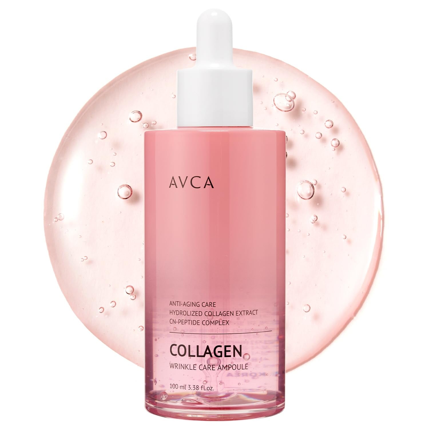 AVCA Collagen & Peptide Wrinkle Care Serum 100Ml (3.38 Fl Oz) – Firming Face Serum for Wrinkles and Elasticity, Hydrating Anti-Aging Korean Skin Care with Hydrolyzed Collagen