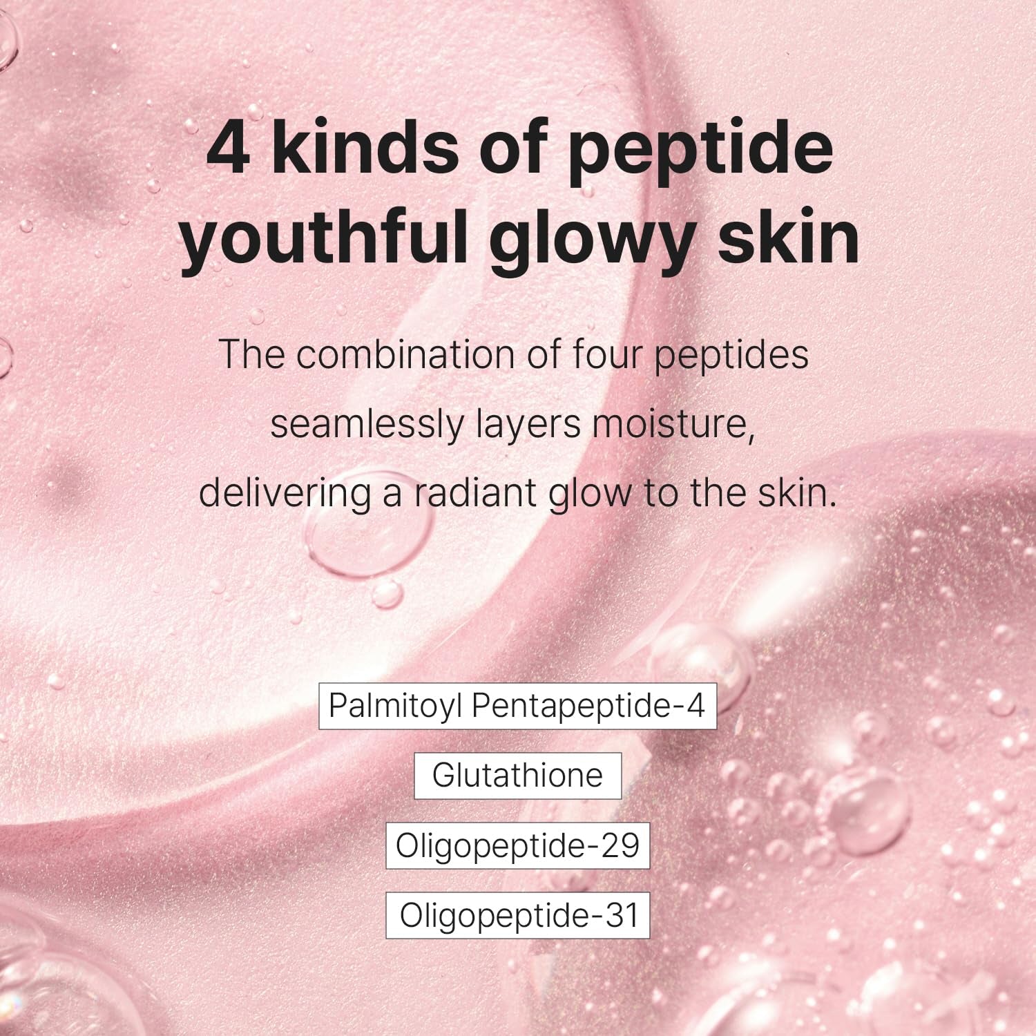 - [Delivering firm hydration with four types of peptides] Through a quadruple layering of Palmitoyl Pentapeptide-4, Glutathione, Oligopeptide-29, and Oligopeptide-31, this product provides moisture and radiance to the skin.