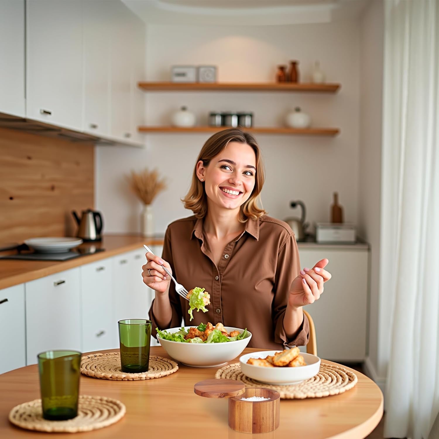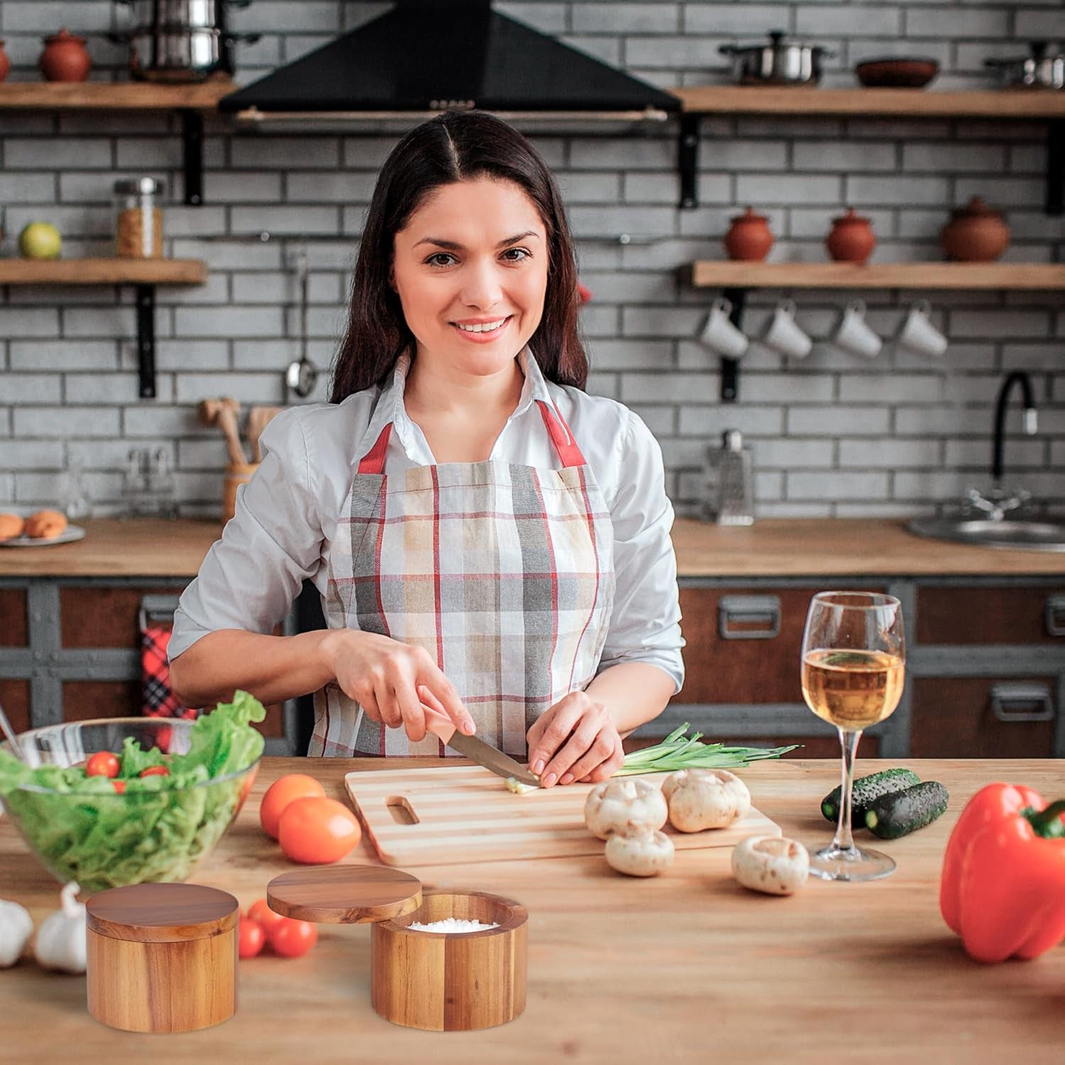The Demigo Salt Cellar is crafted from genuine acacia wood, offering a natural, long-lasting storage solution for salt, spices, and herbs. Each piece features a unique grain pattern, adding rustic charm to any kitchen. The seamless, cornerless interior allows for easy access, while the swivel lid with magnetic closure keeps contents fresh and protected. With a 9oz capacity and compact 4-inch diameter, this wooden box is ideal for everyday use on the countertop or as a stylish gift.