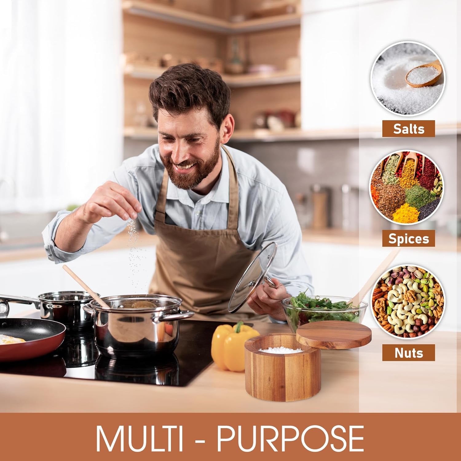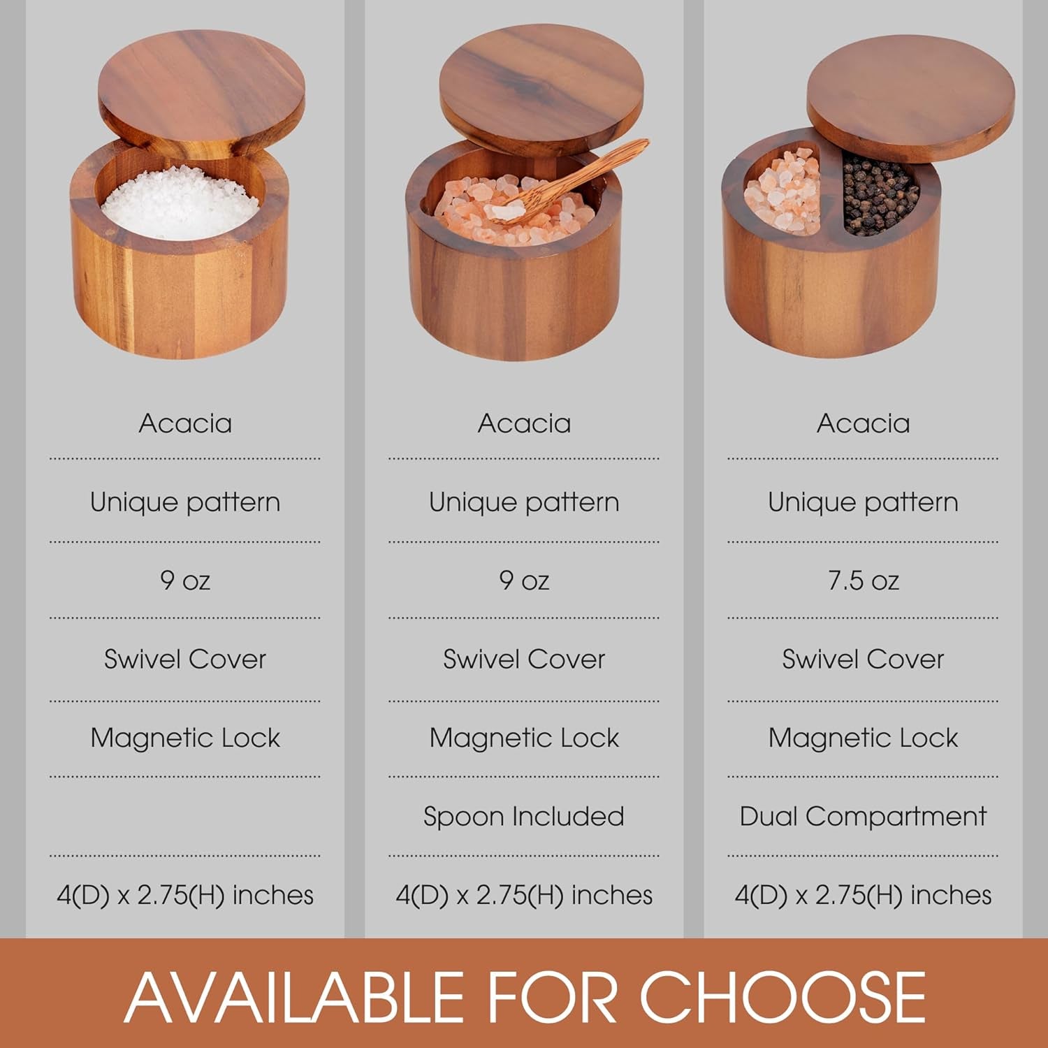 Demigo Acacia Wood Salt Box with Swivel Lid – 9oz Spice Keeper