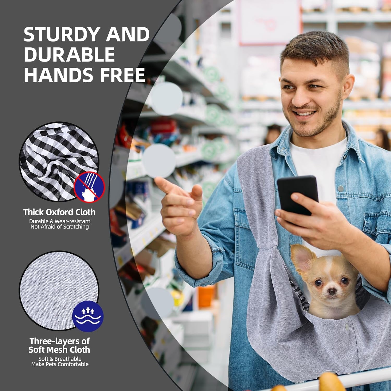 Dog Carrier Sling - Reversible Puppy Carrier Purse with Storage Pocket, Hand-Free Dog Sling Carrier for Carry Small Dogs and Cats, Travel Safety Harness, Dog and Cat Harness (Gray)