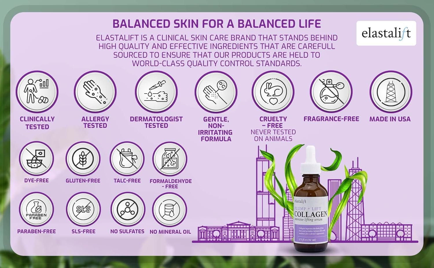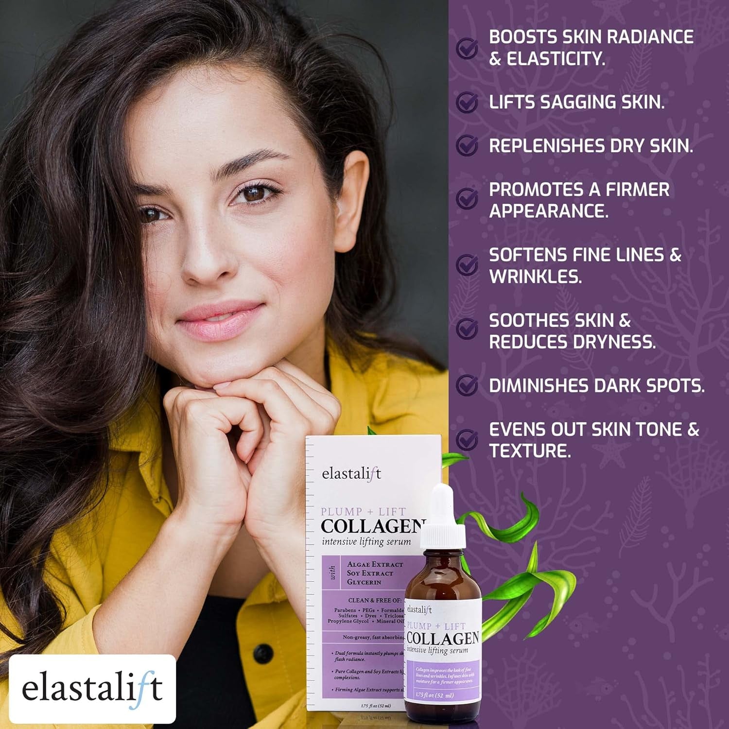- PERFECTLY PLUMP SKIN – Do you dream of the years before wrinkles and fine lines betrayed your age? Revive the firm, glowing, and gorgeous skin from your youth with Elastalift’s Collagen Lifting Serum! Collagen returns skin to its former beauty by stimulating vital elastin production to plump and lif