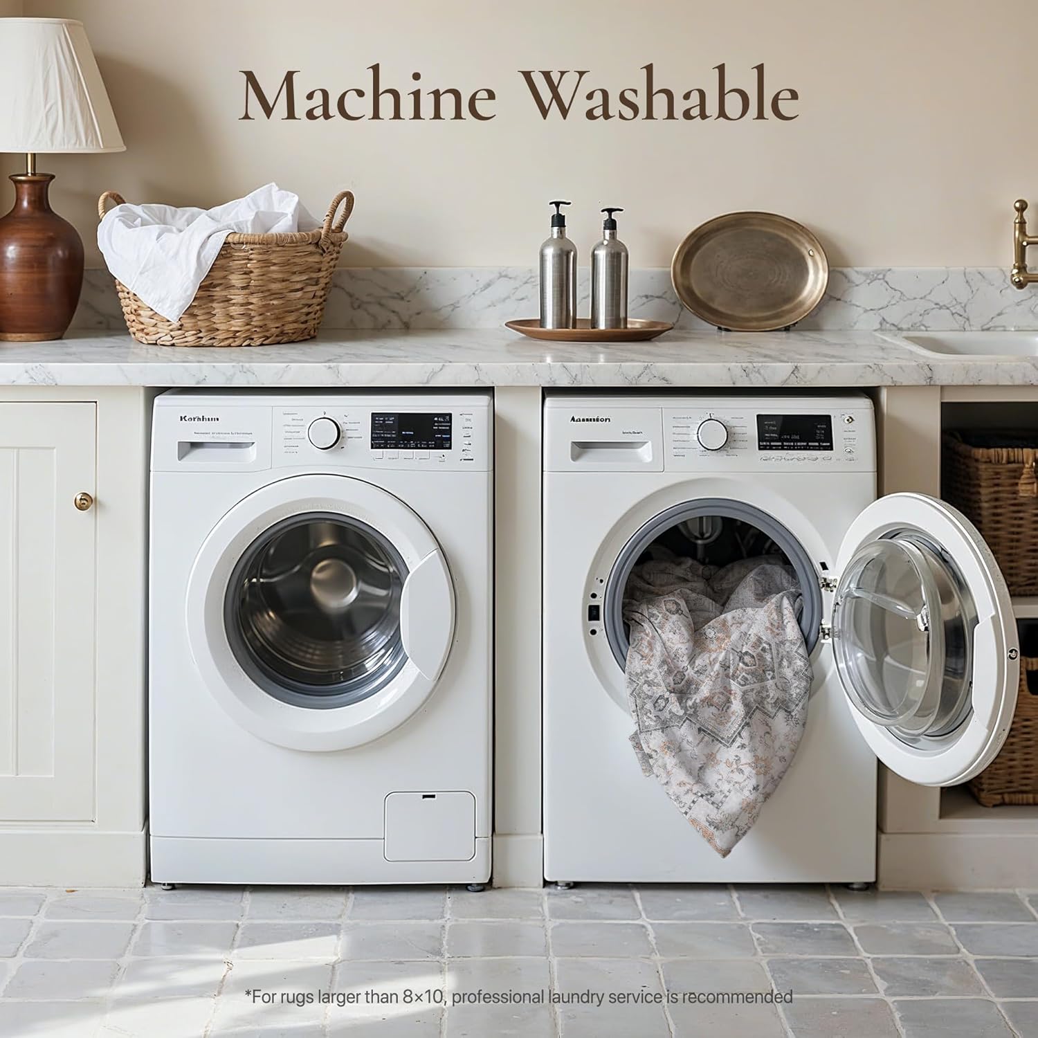 - Machine Washable: Our boho area rug is designed for convenience and fits seamlessly into any lifestyle. Machine wash with cold water on gentle cycle (not to add bleach), air dry or dry on air-only cycle without heat. For daily upkeep, use a vacuum cleaner or a quick wipe. Its VERY THIN design allows for easy removal of pet hair and other debris.