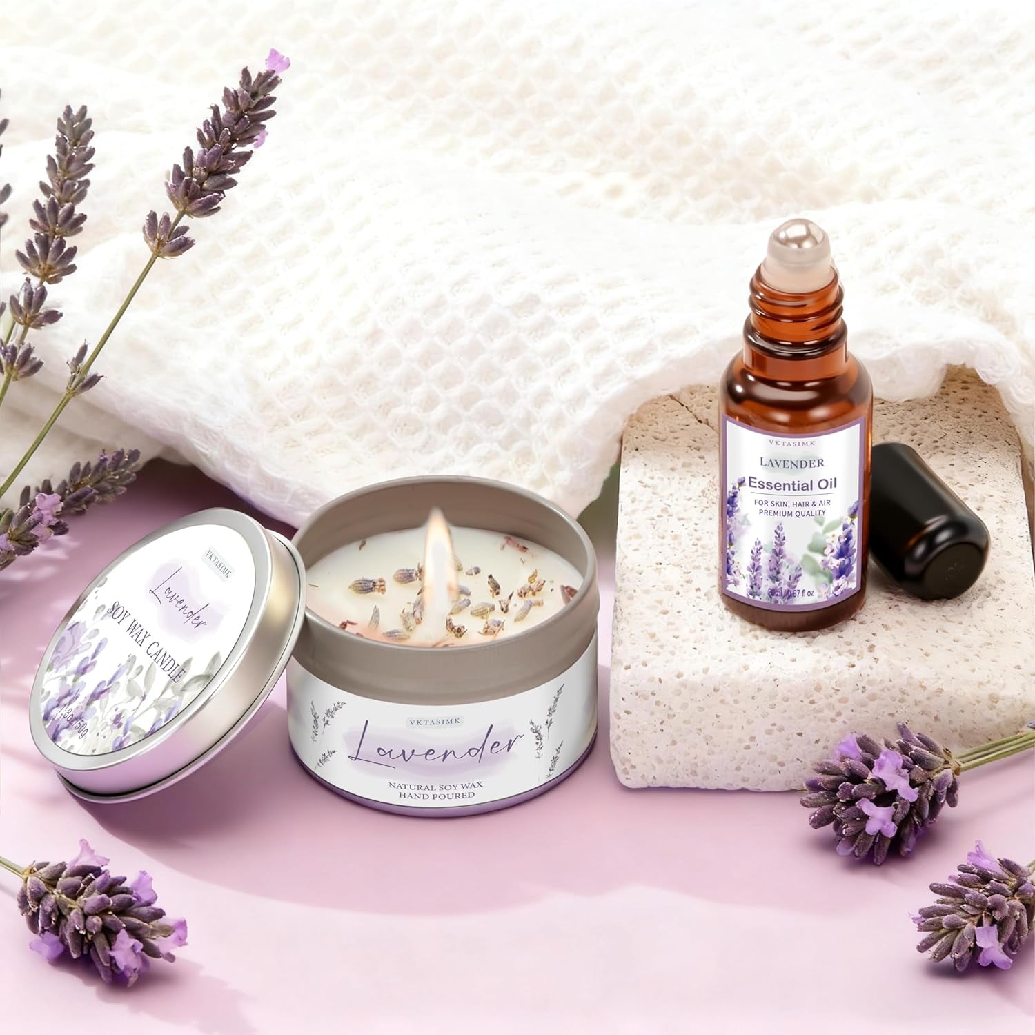 - RELAXATION GIFTS FOR WOMEN : Pamper your skin with the enriching blend of moisturizing Shea Butter and nourishing Vitamin E. Experience the at-home spa gifts set with this lavender kit for women. Treat yourself to a moment of pure relaxation and self-care. The lavender-scented candle and pure essential oil work together to create a serene atmosphere, ideal for unwinding after a long day, meditating, or enjoying a restorative bath. Treat yourself to a moment of pure relaxation and self-care.