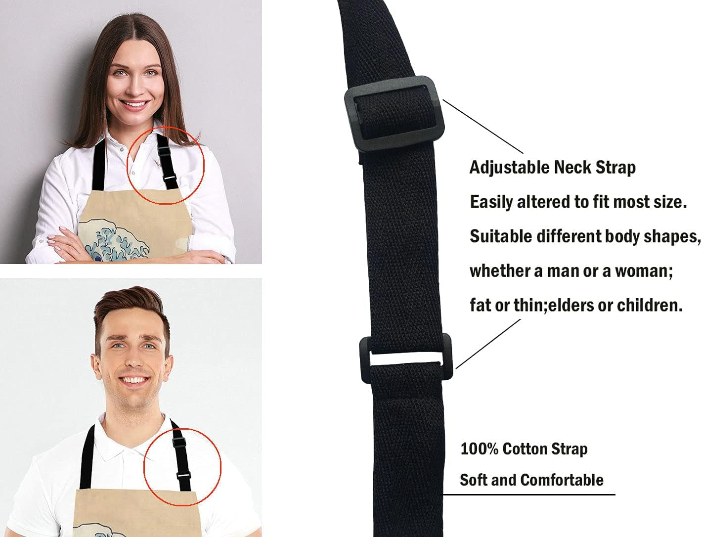 Adjustable neck strap and long waist ties for comfort