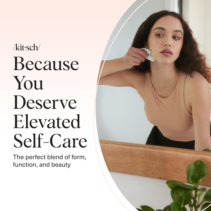 The Kitsch Stainless Steel Gua Sha Tool is a durable, non-porous facial and body massager designed to support your skincare routine. Crafted from 100% stainless steel, it resists rust and tarnish while offering smooth gliding for facial sculpting and gentle massage. Its hygienic surface is easy to clean, making it suitable for repeated use. The tool is designed to assist with manual facial massage techniques, including lymphatic drainage and facial tension relief.