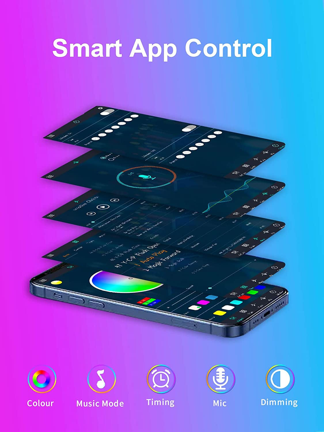 - Bluetooth App Control: LED lights can be connected to a mobile app via Bluetooth for controlling lighting modes and activating music mode to synchronize lights with music. Instantly create a musical atmosphere.