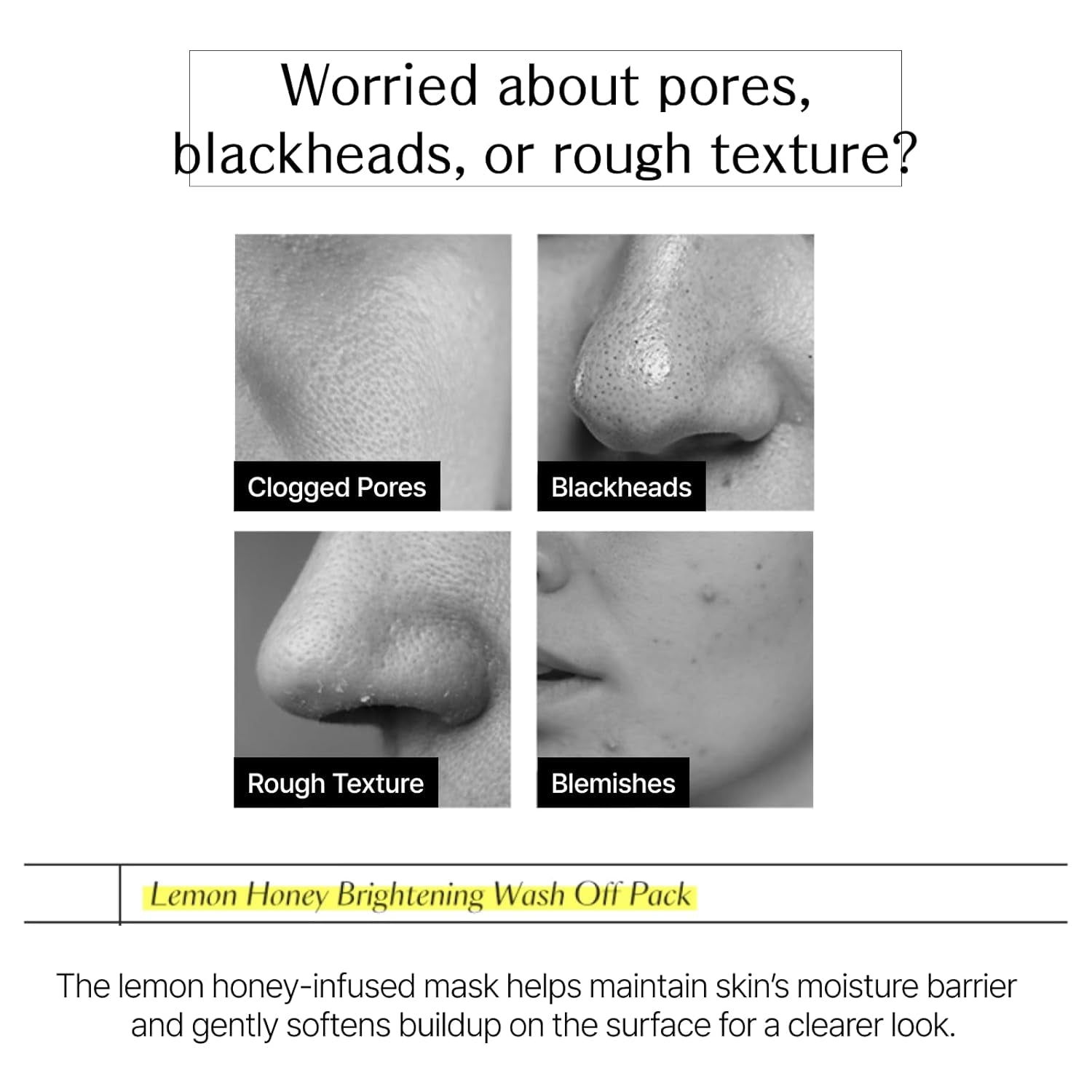 Lemon Honey Face Mask Wash-Off Pack & Scrub — 5-Minute, Exfoliating, Hydrating, Gentle for Sensitive Skin, with Manuka Honey & Lemon Extract, 3.52 Oz (100 G)
