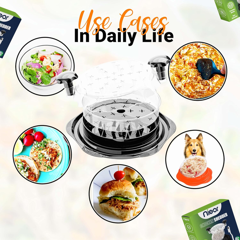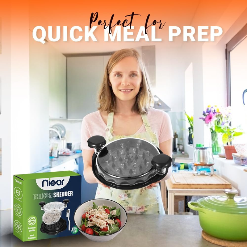 The Nieor Chicken Shredder Tool Twist makes meal prep quick and efficient with its 3-layer shredding system. Designed for cooked chicken, pork, or beef, it evenly shreds meat in seconds. The non-slip base keeps it stable on countertops, while the ergonomic twist handle ensures comfort and control. Made from BPA-free, food-grade plastic, it is heat resistant and dishwasher safe for easy cleaning. Compact and versatile, this shredder is ideal for preparing tacos, salads, sandwiches, and more.Key Product Highlights