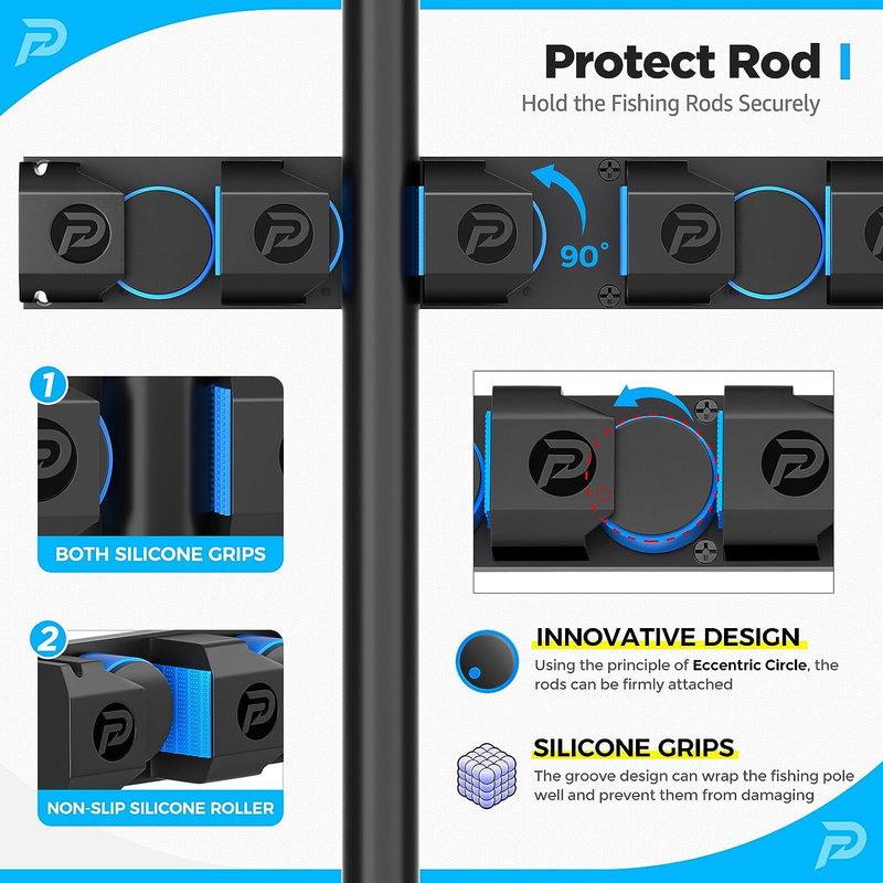 PLUSINNO V6 Wall Mounted Fishing Rod Holders – Extra Large, Holds 6 Rods