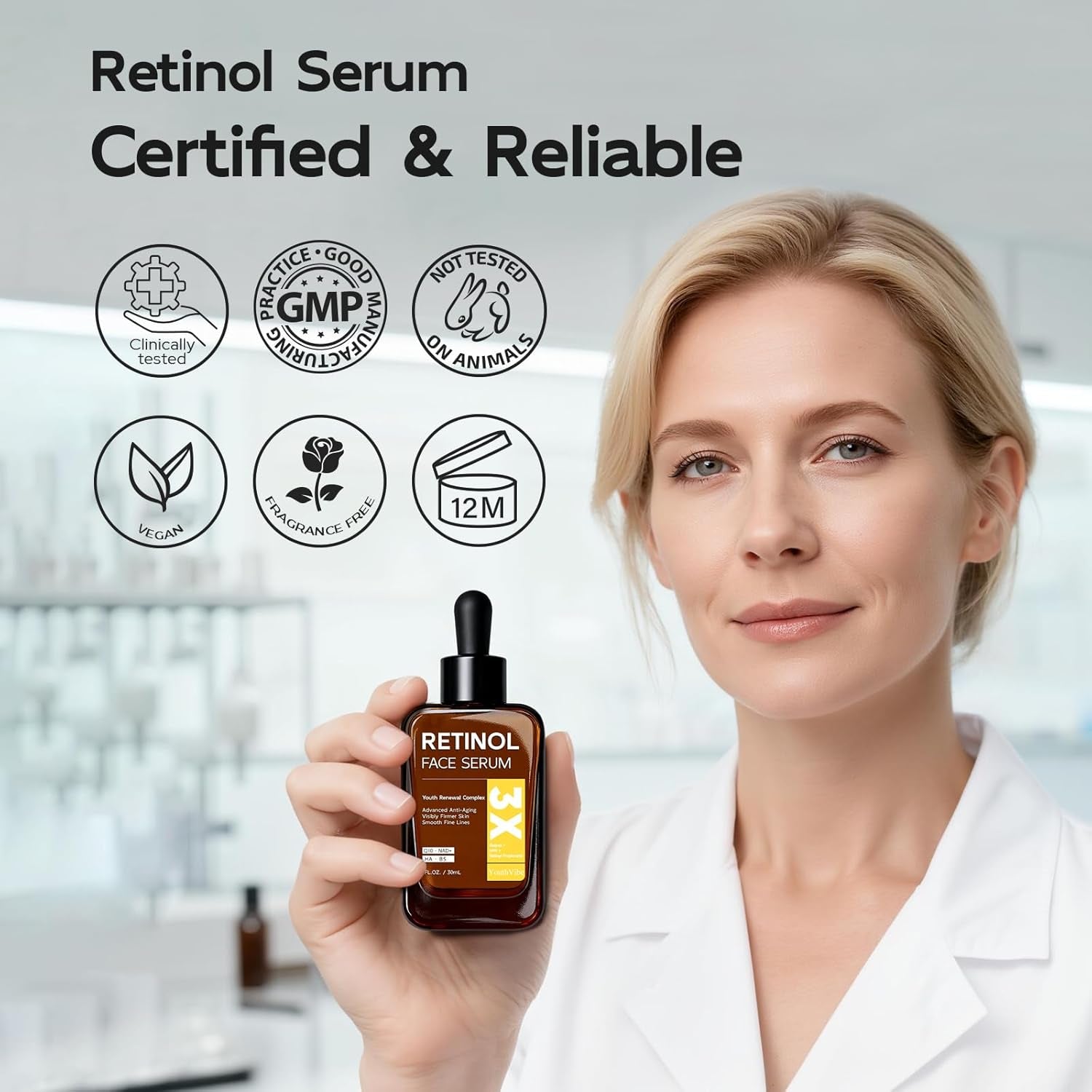 - Triple Retinol Anti-Aging Matrix: With high-purity Crystalline Retinol, high-efficiency HPR, and sustained-release retinol propionate, it delivers long-lasting and gentle anti-aging effects to the skin. As proven by dermatologists and our customers' trials, it takes only 4 to 8 weeks to significantly reduce fine lines and wrinkles on the face.