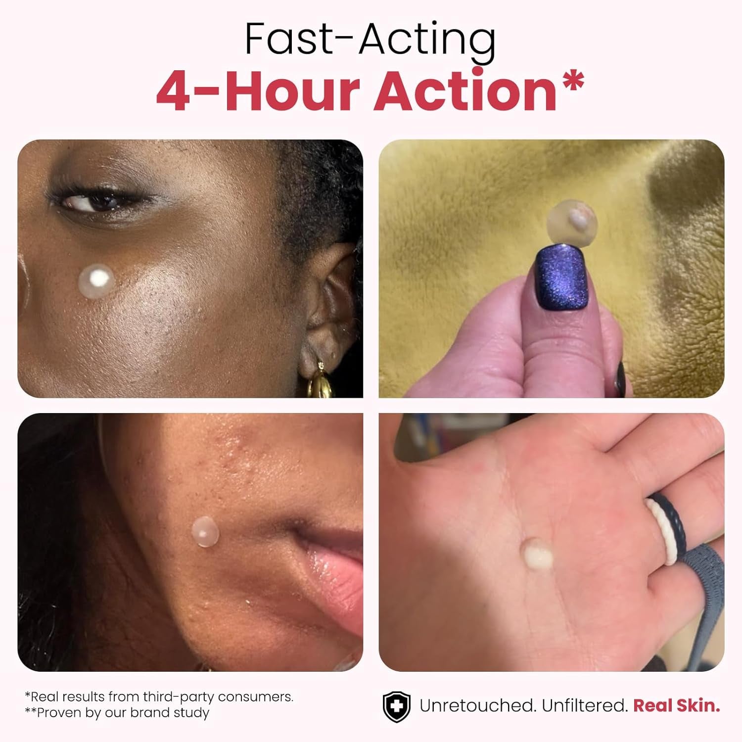 - Results in 4-8 Hours: Absorbs pimple gunk thanks to our medical-grade hydrocolloid. Clinically tested, drug-free, and safe for all skin types.