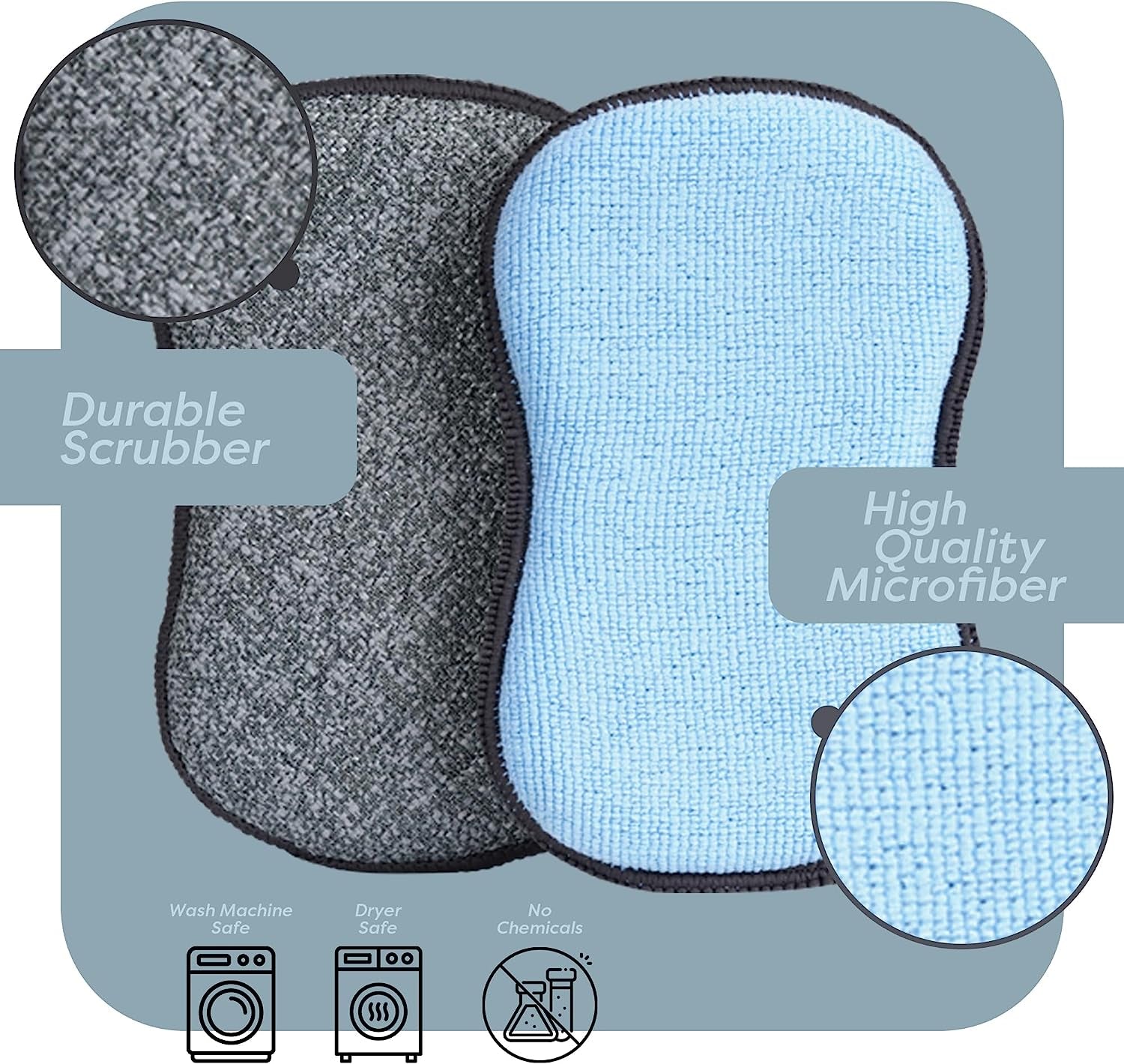 Pack includes 6 sponges in grey and blue