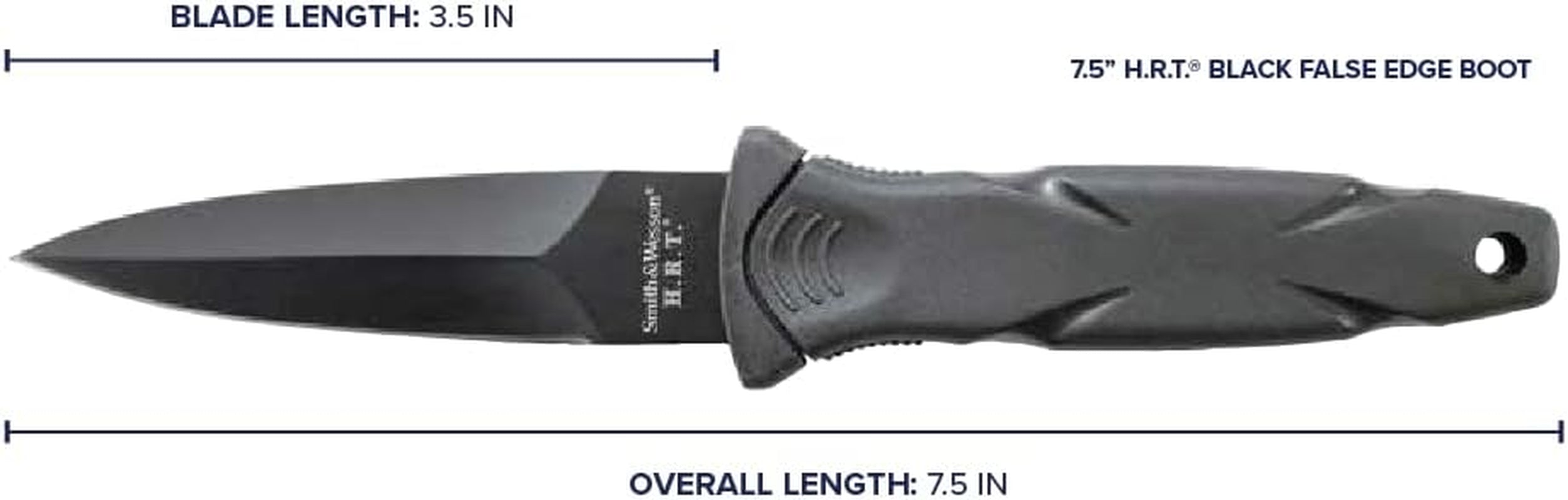 Smith & Wesson SWHRT3BF HRT False Edge Military Boot Knife- 3.5" Blade, 7.5" Overall, 4.4oz, Black