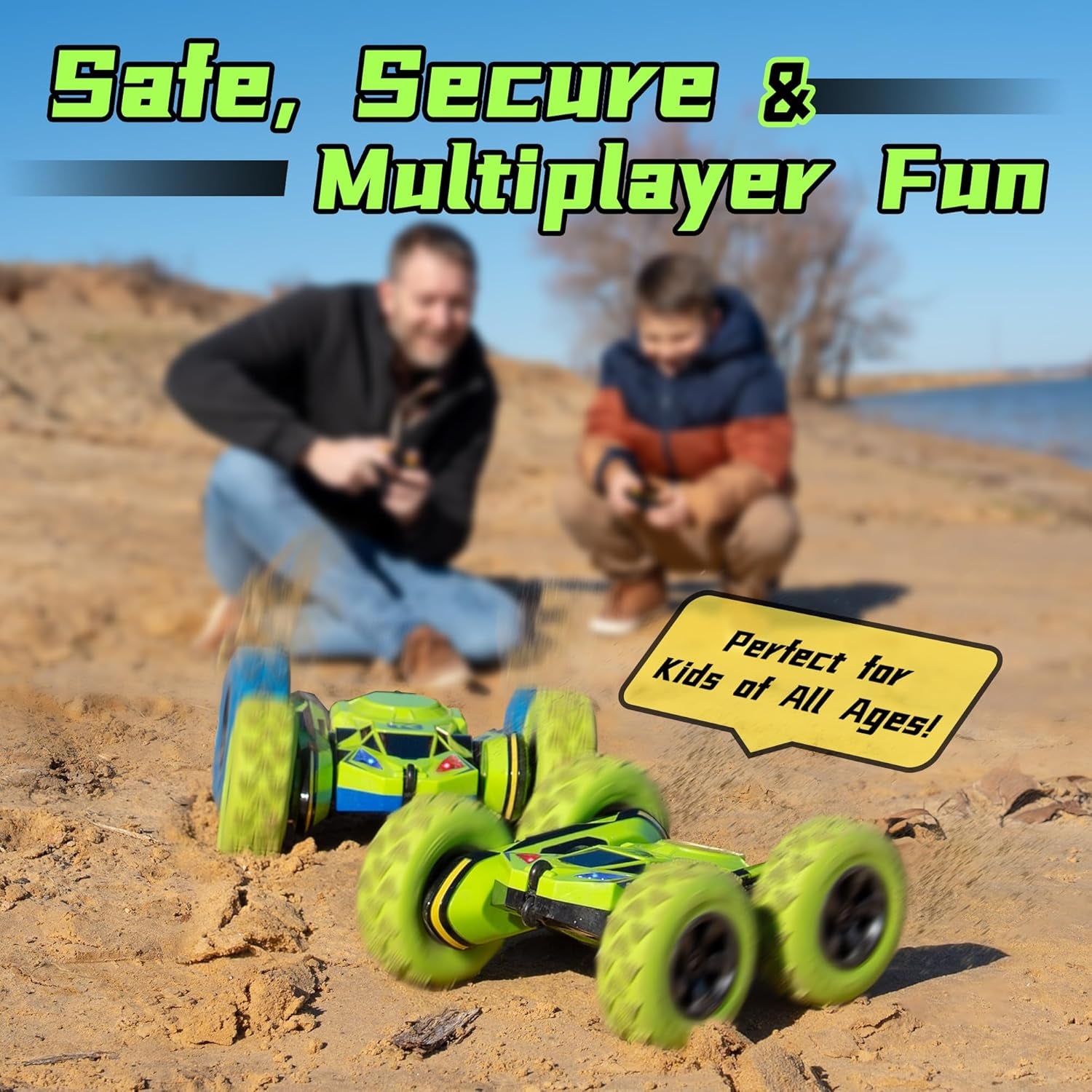 - RC STUNT CAR: In addition to the basic skills that ordinary remote control cars should have, stunt flips and double-sided driving will make it very easy to climb over small obstacles or around them and freed the car from the annoyance of model car rollovers.It will offer an exciting and versatile experience for kids. Nice presents for kids ages 6 to 12.